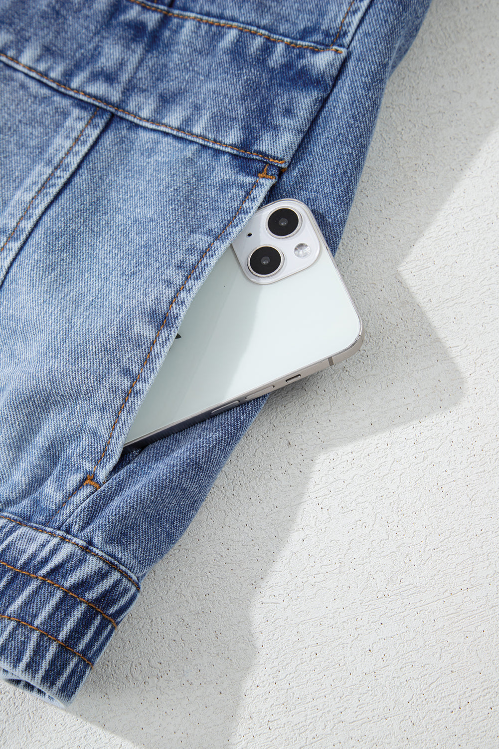 - Denim material provides durability and versatility.