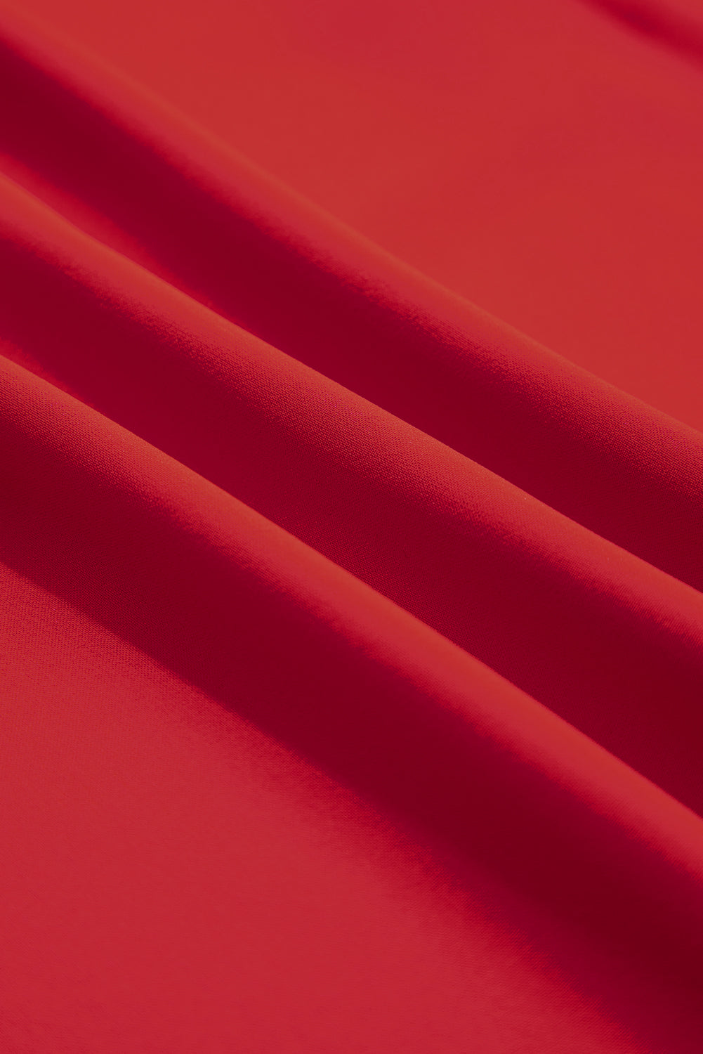 Fiery Red Ruffle Trimmed 3/4 Sleeve Round Neck Blouse