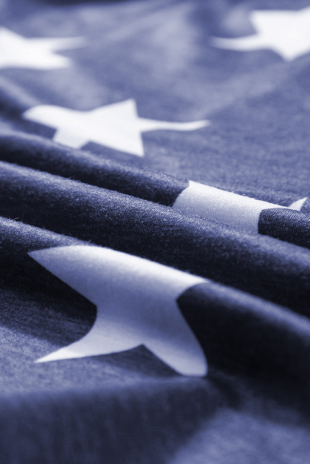 Fiery Red Stars and Stripes Print Drawstring Hooded T Shirt