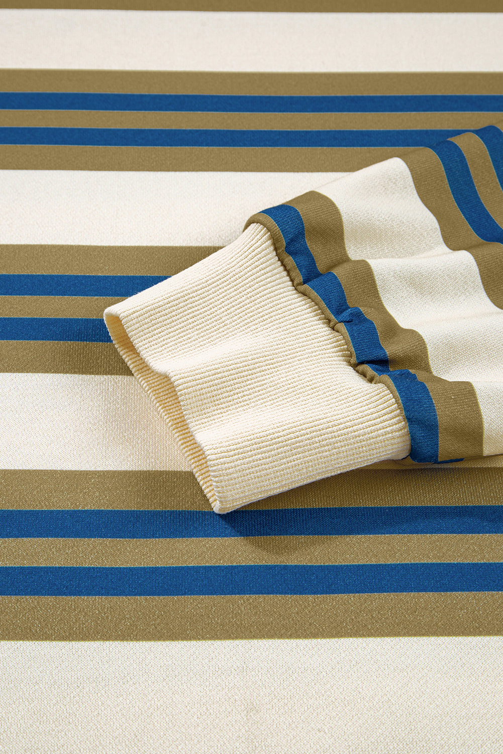 Khaki Stripe Crew Neck Drop Shoulder Pullover Sweatshirt