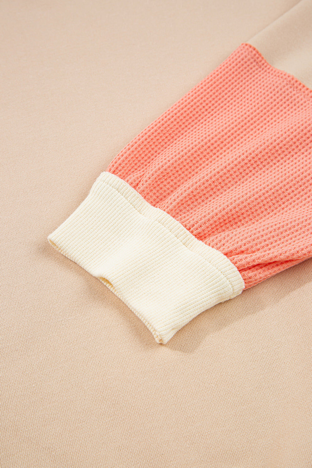 Light French Beige Color Block Textured Patchwork Pullover Sweatshirt