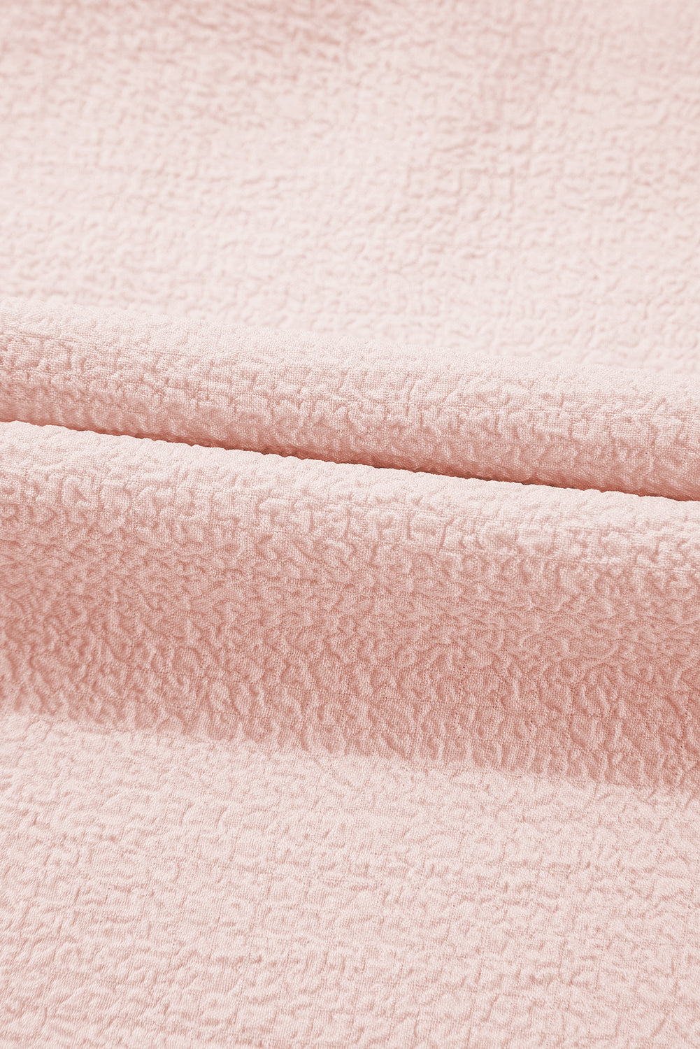 Light Pink Textured Flutter Sleeve Square Neck Bow Back Mini Dress