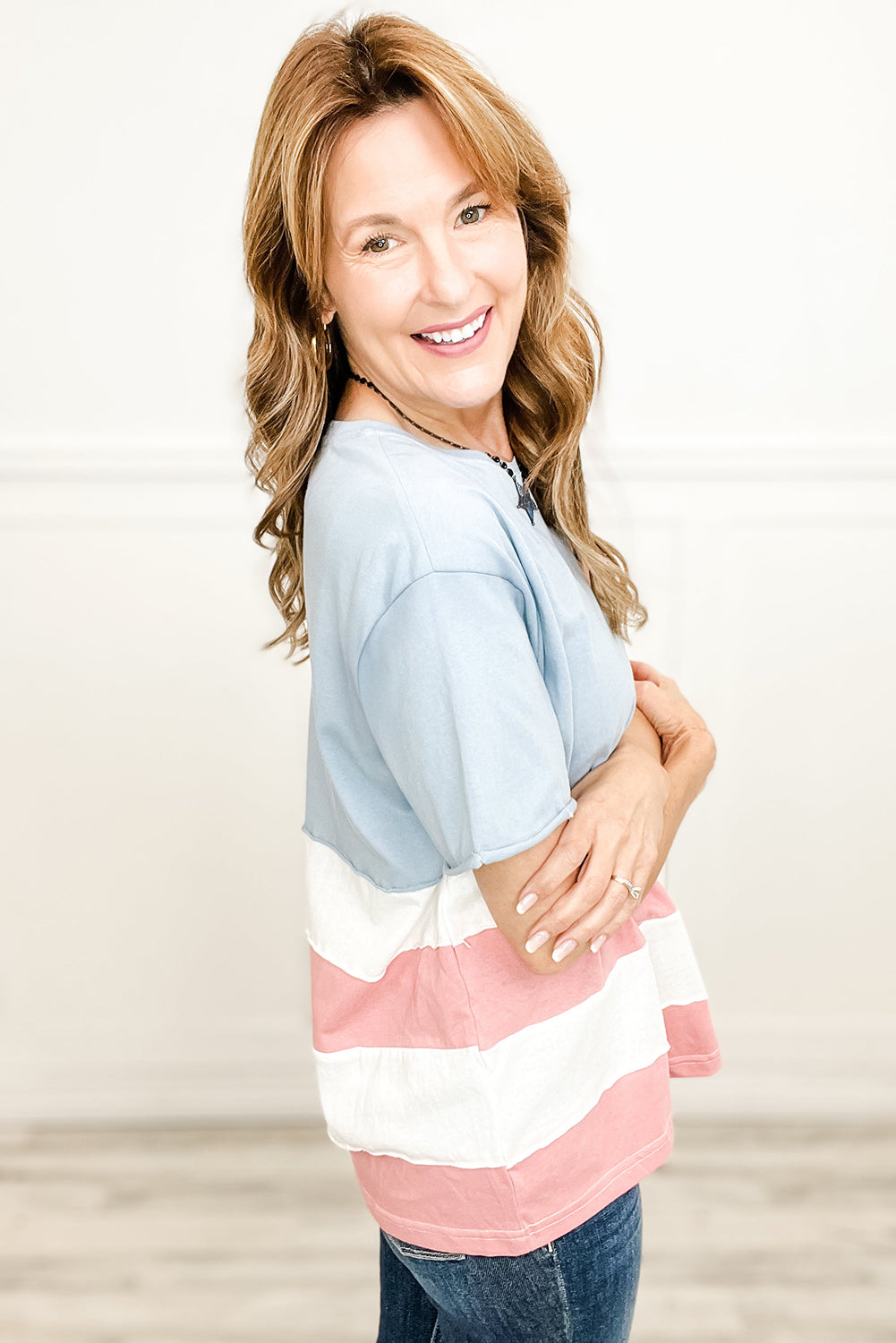 Pink Stars and Stripes Printed Crewneck Independence Day T Shirt