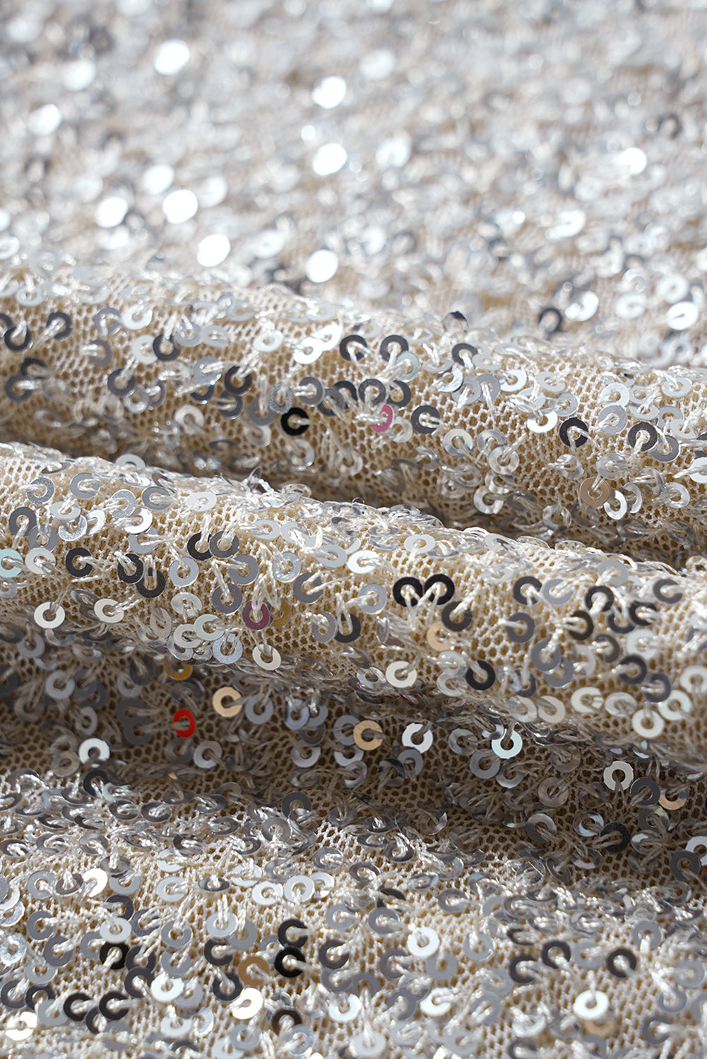 - Puff sleeves adorned with sequins add volume and sparkle.