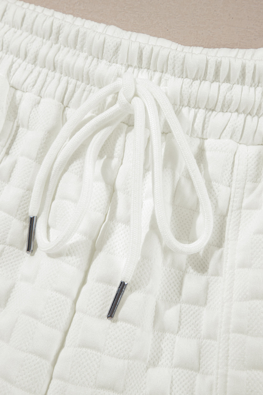 White Solid Color Checkered Texture Short 2pcs Outfit